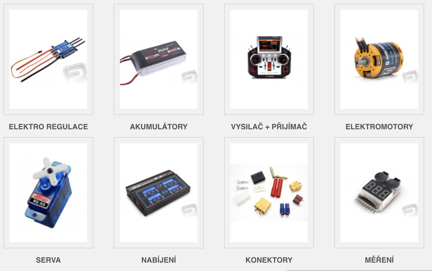 RC vybavení, serva 3g - 40Kg, motory AC/DC, baterie Li-pol 1-4čl / NiMh, regulátory 6 - 120A - AC/DC, vysílače / přijímače -Frsky, Futaba, Spekrum, Cadet a (poslední Hítec přijímače),